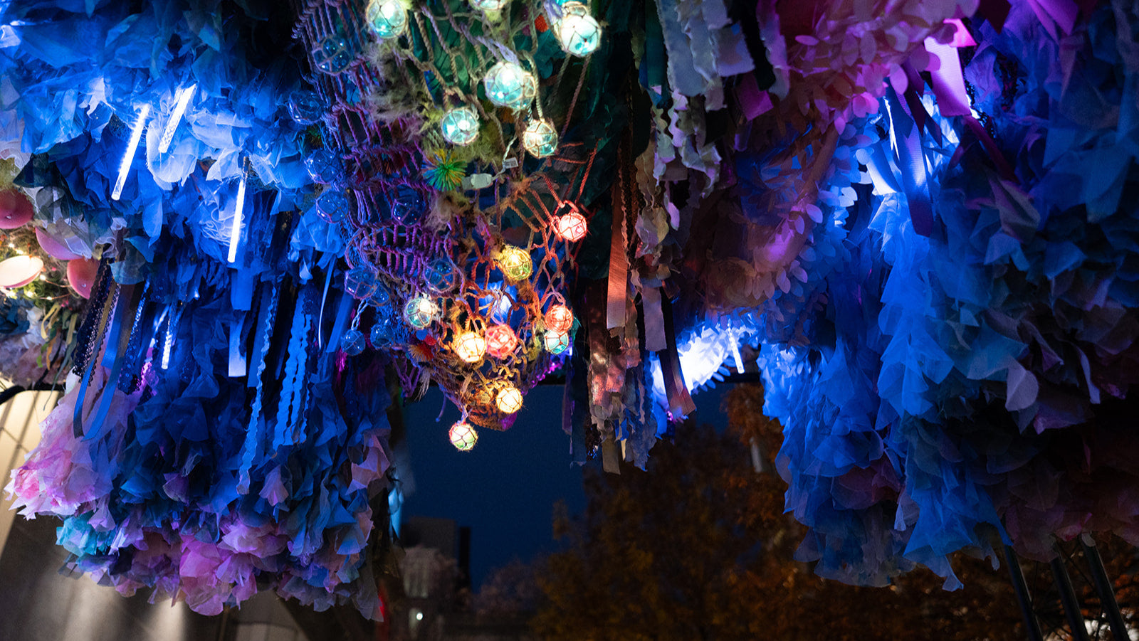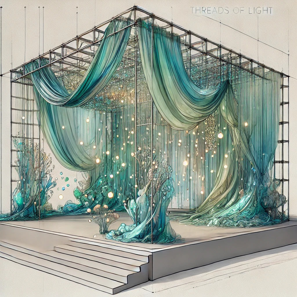 Concept: Threads of Light is an immersive installation inspired by an underwater world, blending organic shapes and fluid light patterns to contrast the beauty of nature with the reality of fashion waste.